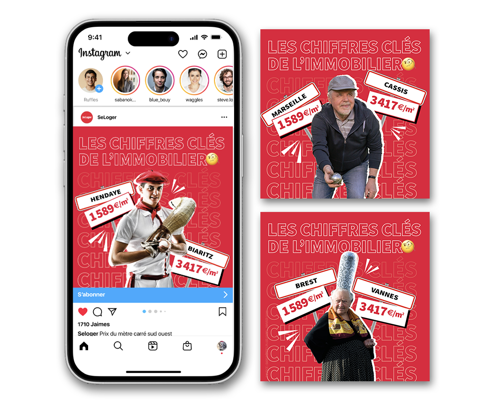 Des contenus réseaux sociaux et web ads conçus pour capter l’attention, générer l’engagement et valoriser l’univers immobilier de SeLoger.